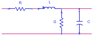 The circuit model for a lossy transmission line assumes an infinite series of two-port components as illustrated. The series resistor represents the distributed resistance with the units as ohms (Ω) per unit length. The series inductor represents the distributed loop inductance with the units as henries (H) per unit length. Separating the two conductors is the dielectric material represented by conductance G in siemens (S) per unit length. Finally, the shunt capacitor represents the distributed capacitance between the two conductors with units of farads (F) per unit length.
