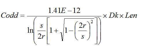 For inductance, we will use the odd-mode inductance formula from the twin-rod transmission line geometry to calculate Lvia :