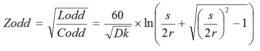 To help us with this task, we start with the twin-rod formula. The odd-mode impedance (Zodd) is half the differential impedance (Ztwin), and is expressed as: