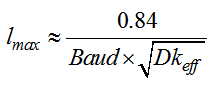 With this in mind, for a given baud-rate (Baud) in GBd, the maximum stub length (lmax), in inches can be estimated by: