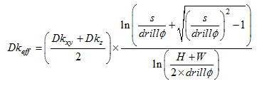 Where: Dkxy is the dielectric constant adjusted for anisotropy (15%-25% higher); Dkz is the bulk dielectric constant from data sheets; s is via-via spacing; drillØ is drill diameter; H and W are anti-pad shape dimensions as shown in Figure 3 .