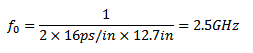 Using tskew = 16 ps/in we calculated above and using 12.7 inches from the last simulation results in the figure above, the fundamental resonant frequency null is: