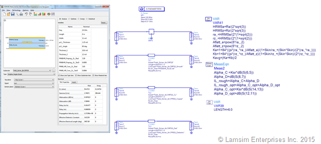 To study the effect of reference plane roughness on transmission insertion loss, Wildriver Technology’s [7] custom modeling platform (CMP), shown in Figure 2, was used as a case study. This CMP was custom developed for Isola [6] to characterize their new I-Tera® MT40 very low-loss laminate material.